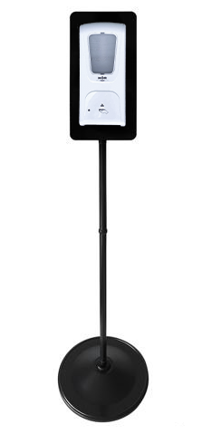 К стойке можно прикрепить любой сенсорный дозатор с помощью саморезов. Стойка устойчива за счет веса и широкого основания внизу. Можно легко перемещать и устанавливать в нужном месте без необходимости снимать дозатор. Стойки поставляются в разобранном виде, в картонной таре. Изготовляются из оцинкованной стали с полимерным покрытием в двух цветах черный и белый.